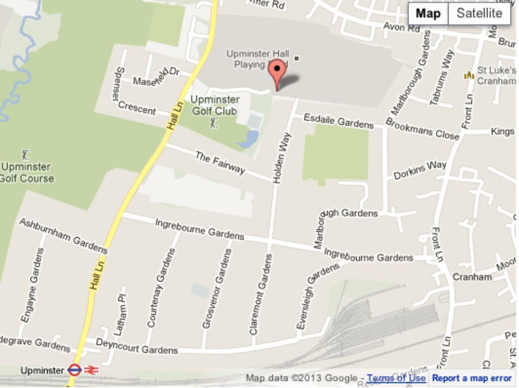 Location We are located adjacent to the Hall Lane Playing fields and the Tithe Barn. Our Address is: Hall Lane Playing Fields, Hall Lane, Upminster, Essex, RM14 1AU Telephone number of Hall : 01708 220320 click to enlarge